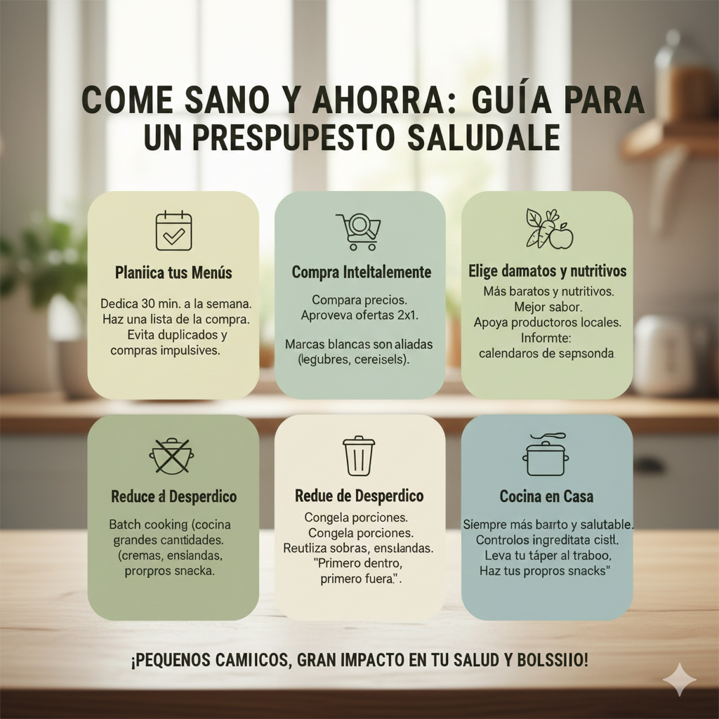 Ahorrar en comida no significa comer peor ni renunciar a una alimentación saludable. En esta sección encontrarás <strong>consejos prácticos, estrategias reales y métodos de organización</strong> para reducir el gasto en la compra semanal, optimizar los alimentos y aprovechar al máximo cada ingrediente sin desperdiciar comida.<br>El aumento del precio de los alimentos ha convertido la <strong>planificación de comidas y el ahorro en la cocina</strong> en una necesidad para muchas familias. Por eso, aquí aprenderás cómo organizar tus menús semanales, ajustar tu presupuesto mensual y cocinar de forma inteligente, manteniendo una dieta equilibrada, variada y adaptada a tu día a día.
