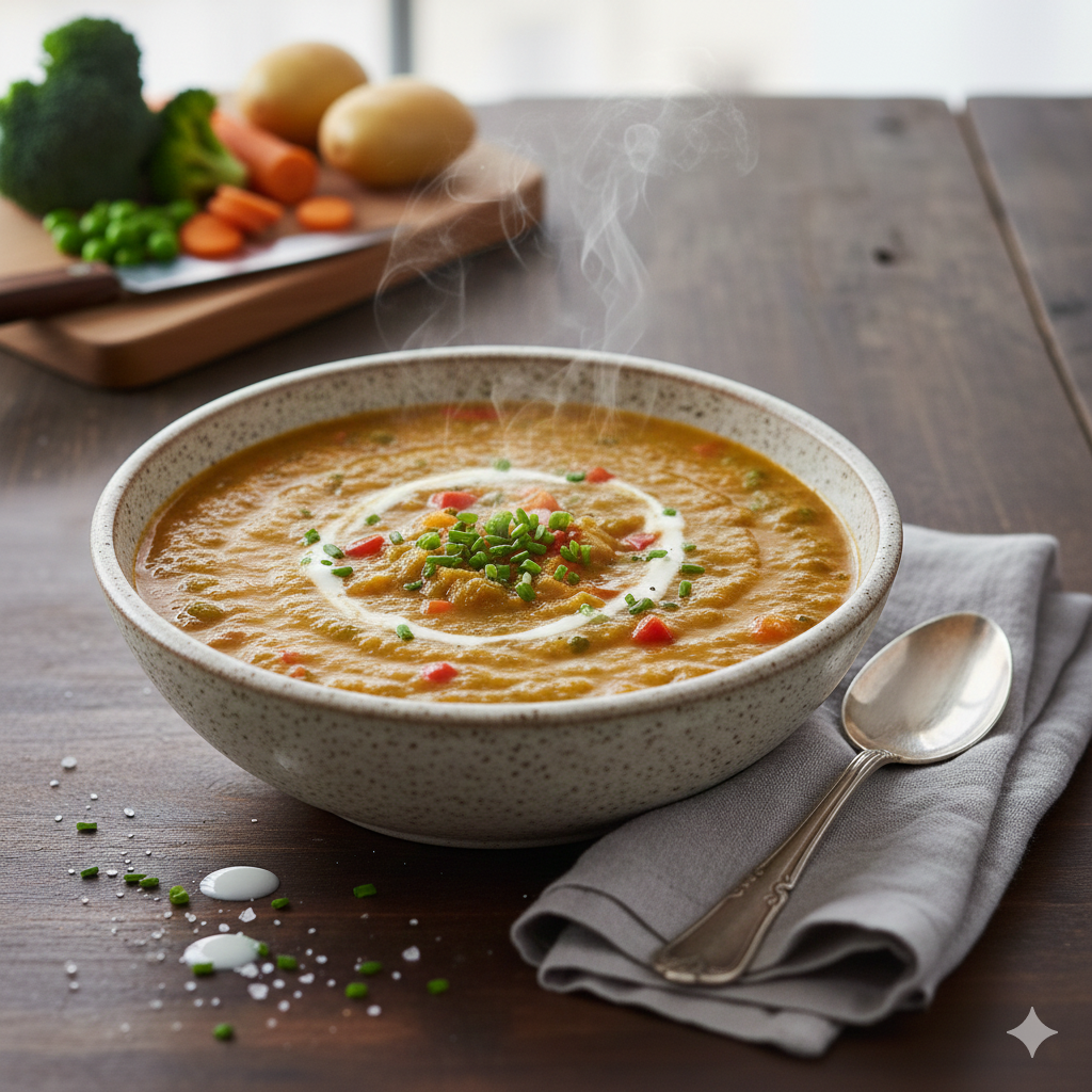 - En una olla, sofríe la cebolla y la zanahoria con un chorrito de aceite hasta que estén blandas.
