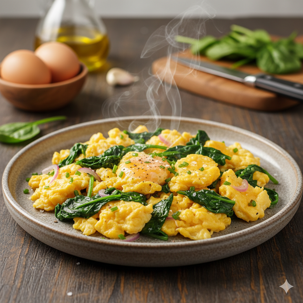 - Bate los huevos y añade a la sartén, cuajando a fuego medio.