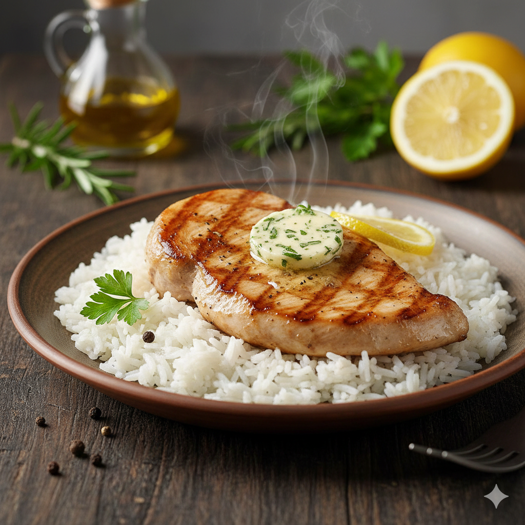 7. Pechuga de pavo a la plancha con arroz blanco